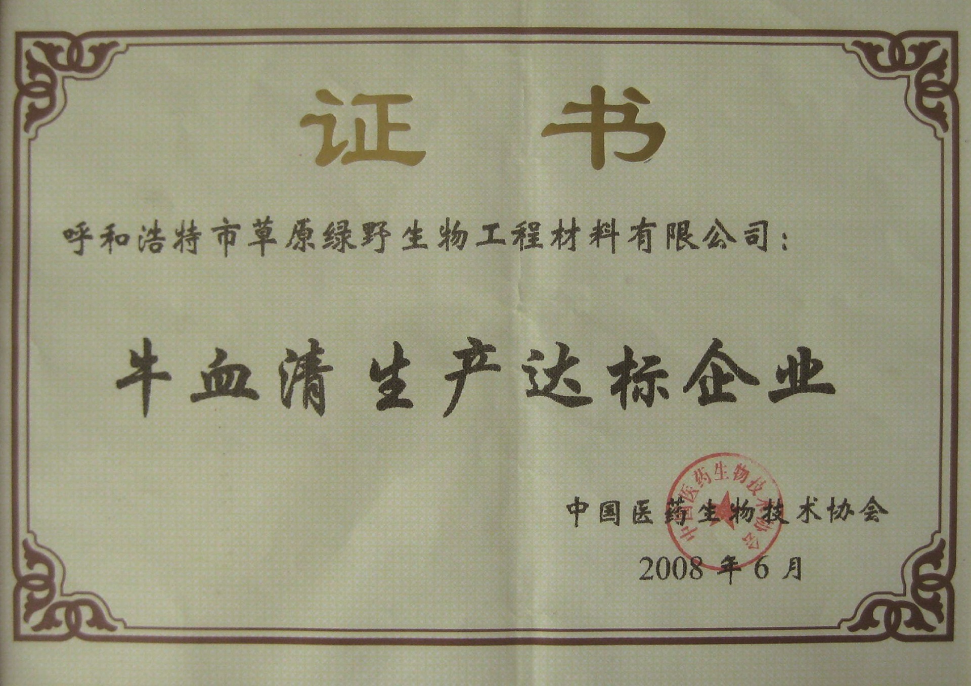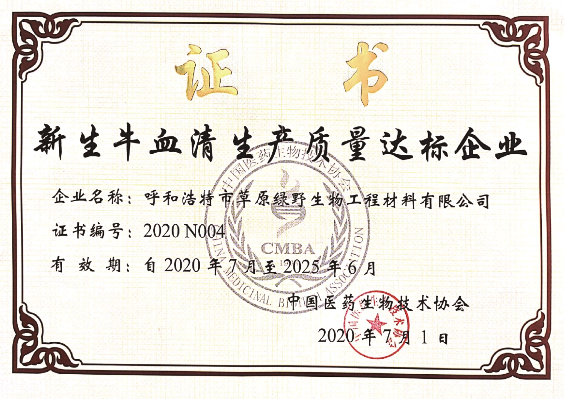 公司至今已多次通過中國醫(yī)藥生物技術(shù)協(xié)會《牛血清生產(chǎn)企業(yè)達標》認證、《牛血清生產(chǎn)質(zhì)量達標企業(yè)》認證。ISO9001質(zhì)量管理體系認證、ISO45001職業(yè)健康安全管理體系認證、ISO14001環(huán)境管理體系認證、ISO13485醫(yī)療器械質(zhì)量管理體系認證、ISO50001能源管理體系認證、GB/T29490知識產(chǎn)權(quán)合規(guī)管理體系認證、AAA級信用企業(yè)認證、A級納稅單位評審等。